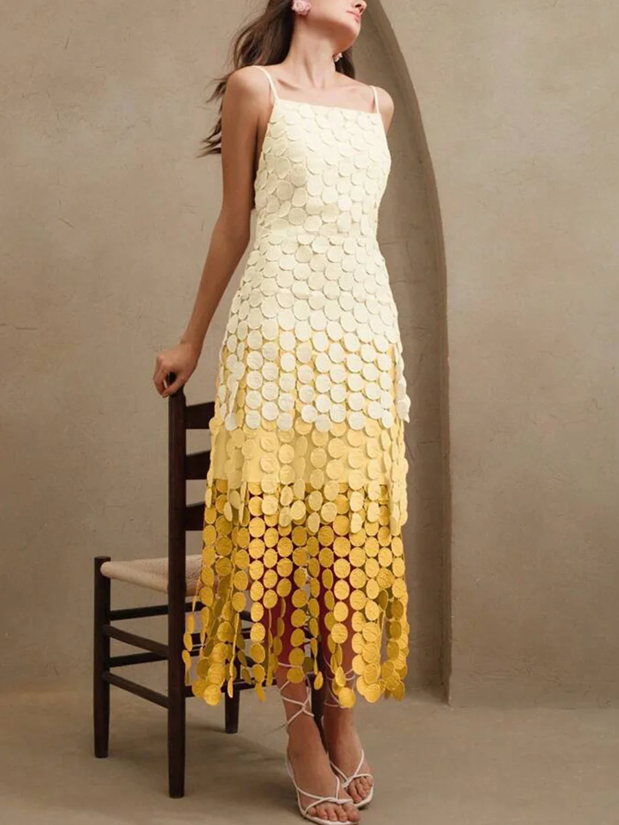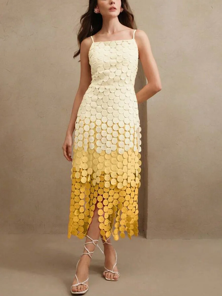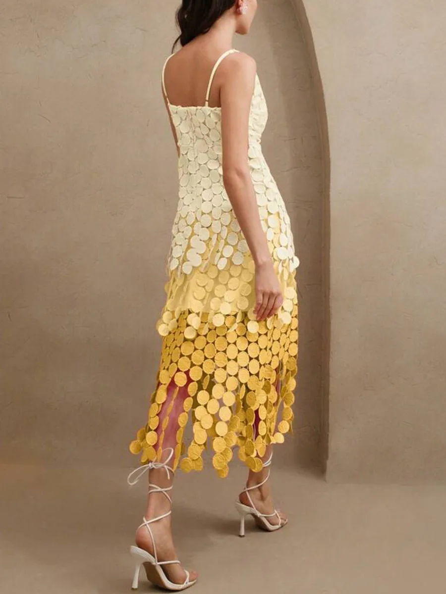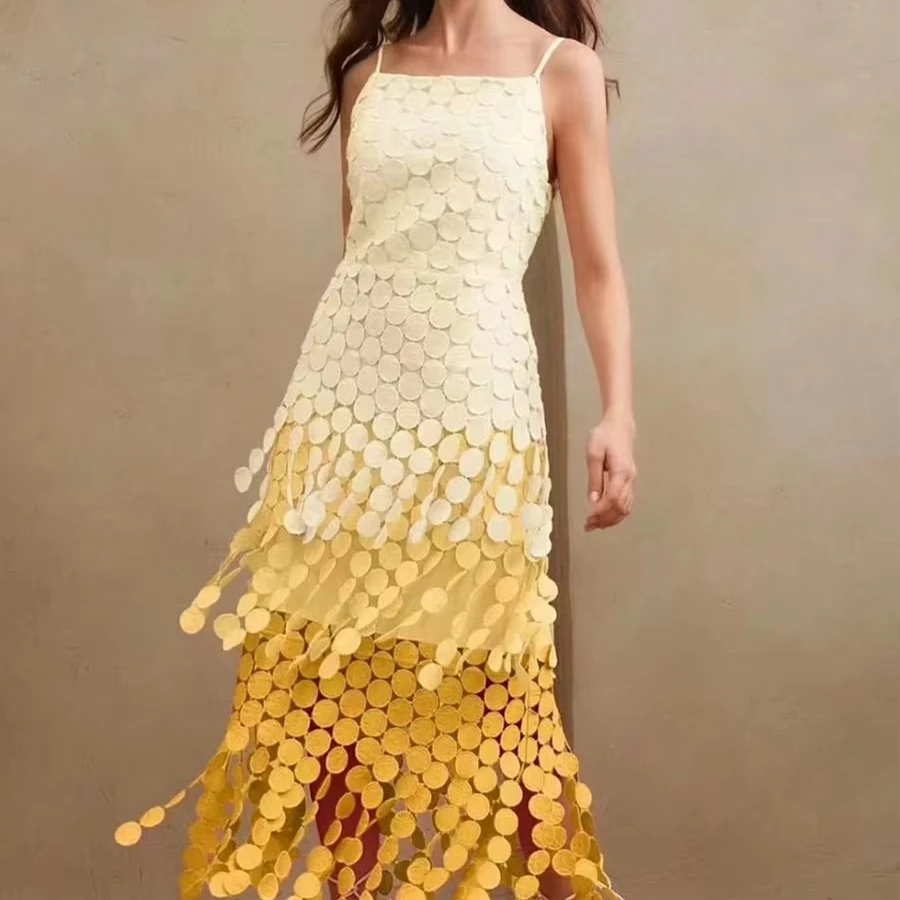 Bettergirl High-quality French Slit Halter Dress 2025 Autumn New Sleeveless Irregular Shaped Yellow Long Dress
